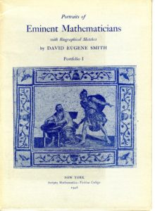 The 1939 World’s Fair opened in New York with the optimistic theme, “The World of Tomorrow.” The Fair organizers envisioned a future world of 5000 years of tomorrows, earth dwellers of 6939, who would be intrigued by the civilization of their ancestors. The Westinghouse Company took on the challenge of creating a time capsule capable of lasting 5,000 years and curating its contents. A Yeshiva College publication, Portraits of Eminent Mathematicians by David Eugene Smith, was selected to be part of this treasure, buried at the site of the World’s Fair on September 23, 1938. Portraits of Eminent Mathematicians was an offshoot of Yeshiva’s periodical, Scripta Mathematica. Scripta Mathematica was the brainchild of Yeshiva College mathematics professor Jekuthiel Ginsburg, editor of the quarterly from its inception in 1932 until his death in 1957. Jekuthiel Ginsburg at work.In the words of David Fleisher, professor of English at Yeshiva College, “The honor accorded these publications [Scripta] at the World’s Fair was a significant indication of the world-wide recognition which in a few short years the purposes and accomplishment of Scripta had achieved.” Portraits of Eminent Mathematicians. 1946 reprint. Portraits of Eminent Mathematicians, 1938 Portraits of Eminent MathematiciansBernard Revel, President of Yeshiva College, explained in the first issue of Scripta that “the policy of the Journal is in agreement with the ideal of ‘learning for the sake of learning’ which inspired the founders of Yeshiva College.” The initial issue also described the goal of the periodical: it
